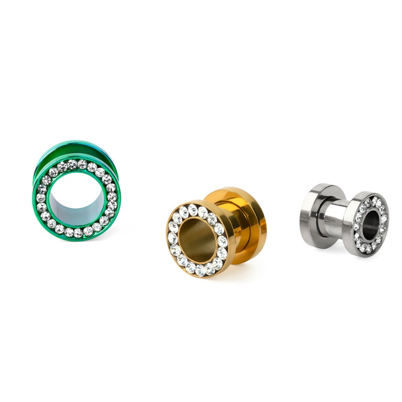 Klasisks tunelis no ķirurģiskā tērauda, pieejams dažādās krāsās un izmēros. Visiem modeļiem ir skaisti akmentiņi, ieklāti viens otram blakus, ieskaujot visu apmali. Tunelis ir pieejams dažāda izmēra stieptajiem pīrsingiem, kuri derēs lielāko daļu auss ļipiņu.