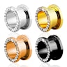 Tunelis ir izgatavots no ķirurģiskā tērauda. Tā robustā un drošā aizmugure ar vītni padara to ērtu nēsāšanai. Rotas ievietošana un izņemšana ir neticami viegla; Tu spēsi to izdarīt pat ar aizvērtām acīm.