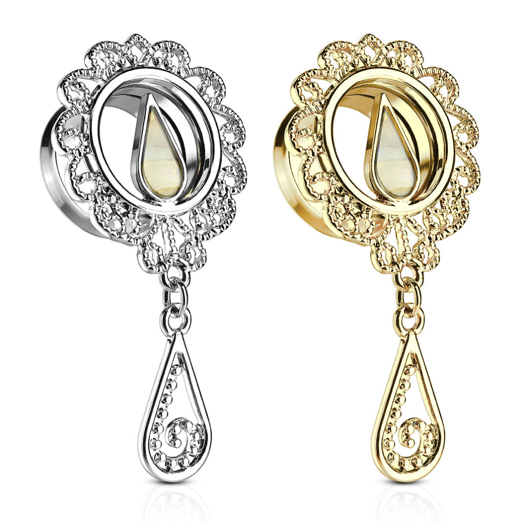 Augšā redzamais tunelis ir pieejams sudraba un zelta krāsā. Modeļiem atšķiras tikai to krāsa. Abiem ir pieejami seši dažādi izmēri, sākot no 2g līdz pat 5/8 collām (6 mm līdz 16 mm). Asaras un rotas izmērs mainīsies proporcionāli ar izvēlēto biezumu.