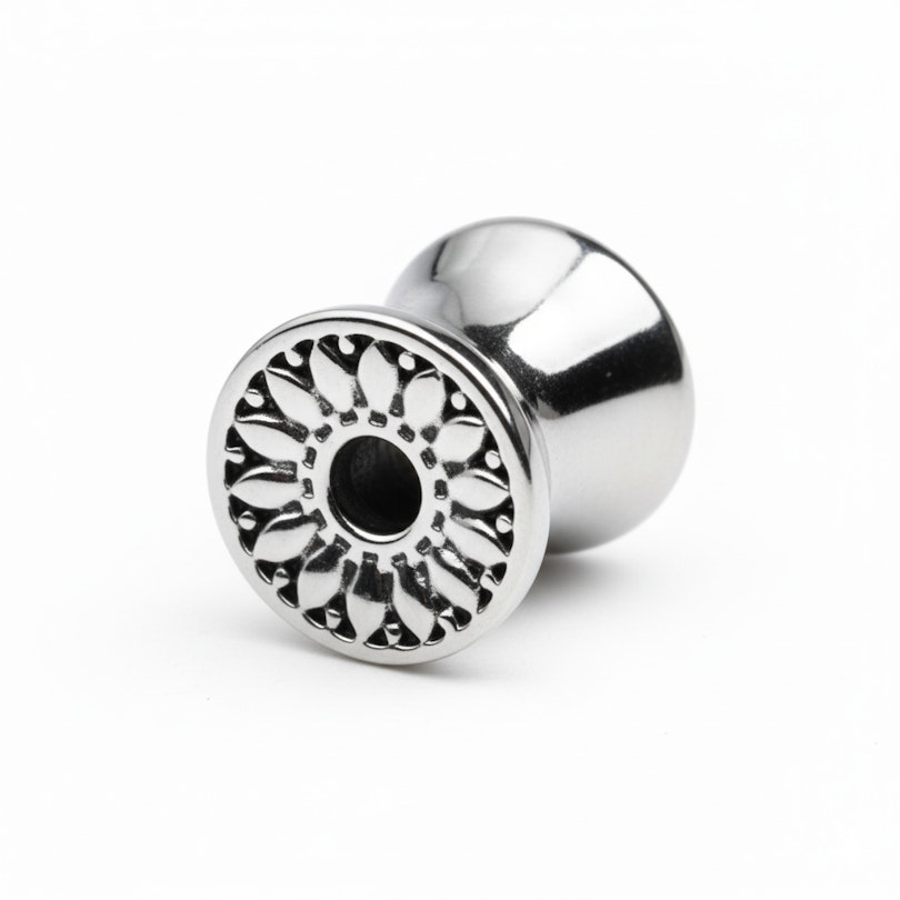 Tunelis ar margrietiņas dekoru ir veidots kā viengabalaina rota, kas ir gan vienkārša, gan stilīga. Priekšpusē ir ziedlapiņām līdzīgs dekors, kas piešķir Taviem izstieptajiem auss pīrsingiem maigu, teksturētu akcentu, kas ir pamanāms, taču bez pārspīlējuma.