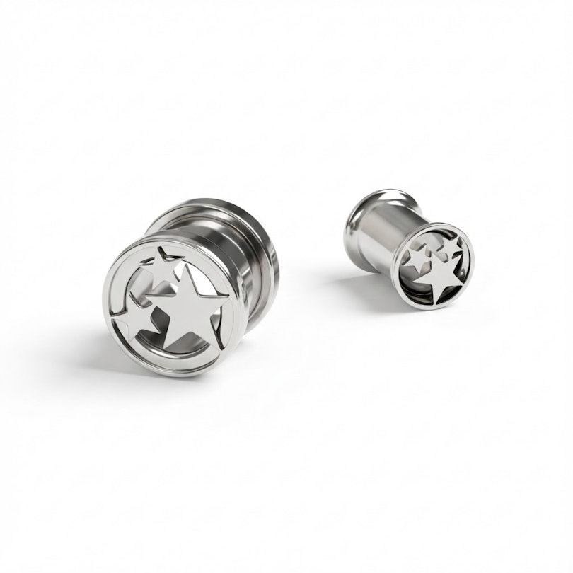 Tunelis ar trim zvaigznēm piešķir izstieptajiem auss pīrsingiem rotaļīgu noskaņu. Rotas priekšpusē mirdz trīs izgrieztas zvaigznes, kas rada drosmīgu, taču reizē arī vieglu noskaņu, tādējādi ļaujot šo rotu lieliski iekļaukt ikdienas stilā.
