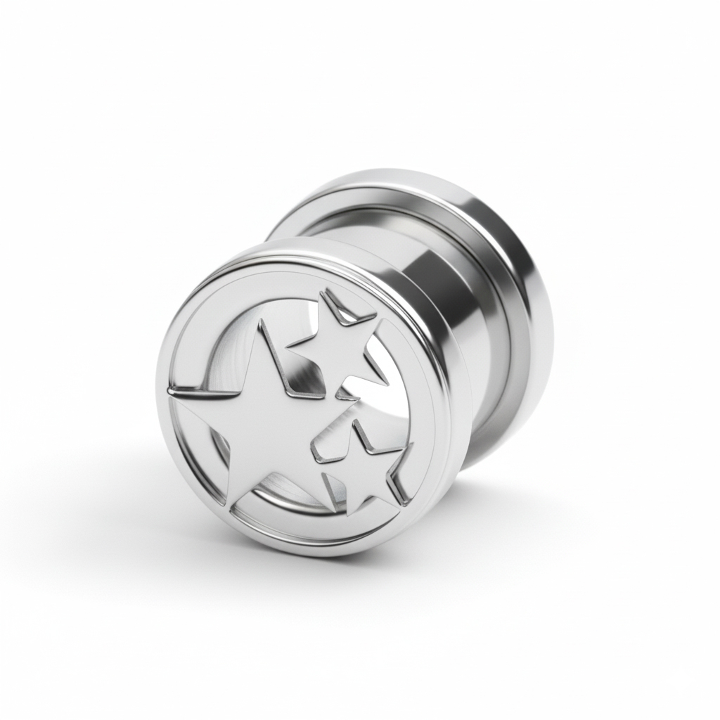 Tunelis ar trim zvaigznēm piešķir izstieptajiem auss pīrsingiem rotaļīgu noskaņu. Rotas priekšpusē mirdz trīs izgrieztas zvaigznes, kas rada drosmīgu, taču reizē arī vieglu noskaņu, tādējādi ļaujot šo rotu lieliski iekļaukt ikdienas stilā.