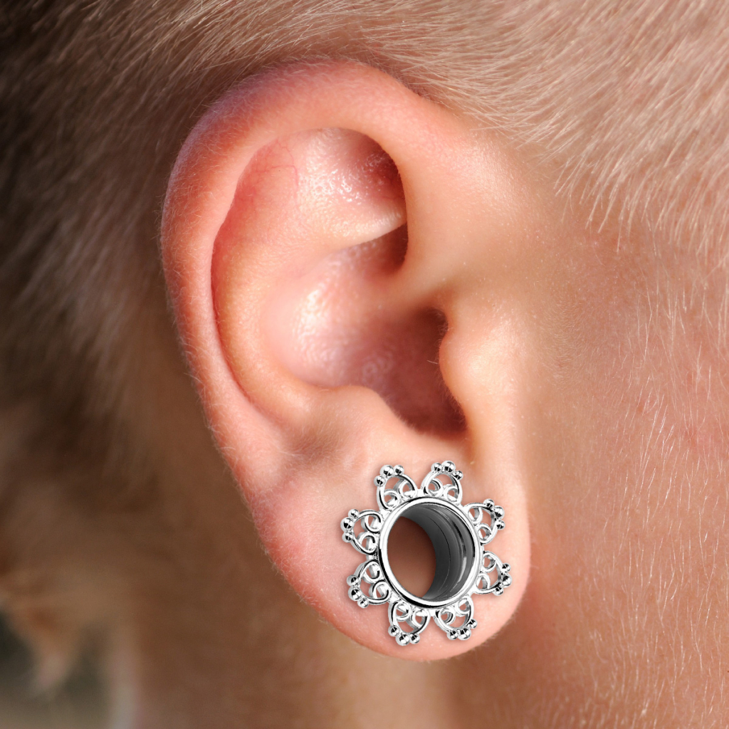 Vai vēlaties, lai jūsu auss ļipiņas izstaipītais pīrsings izstarotu pārliecinātību, drosmi un eleganci? Tad šī rotaslieta ir kā radīta jums. Tas ir unikāls tunelis ar tribal ornamentu, rūpīgi izstrādāts dizains līdz pēdējai detaļai. Izvirzītās apmales priekšpusē ir no misiņa izgatavota dekorācija, kas formē apli. Kad tunelis atrodas auss ļipiņā, tribal dizains piešķirs jūsu stieptajam pīrsingam visos laikos aktuālu un izsmalcinātu stilu.