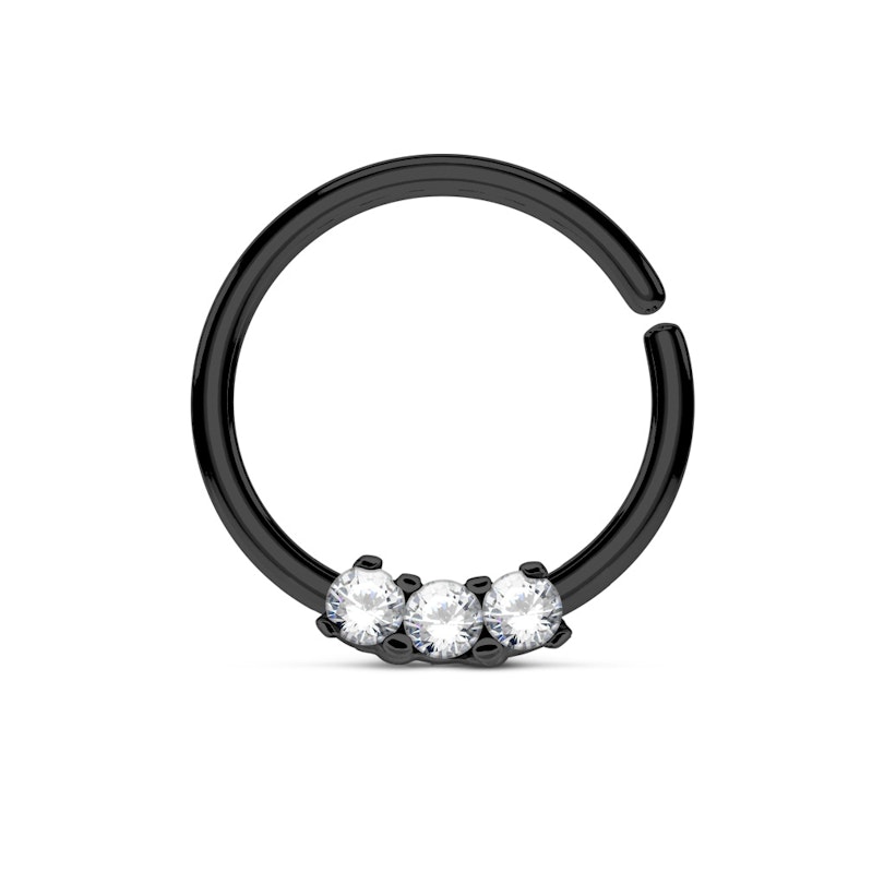 Septum pīrsinga gredzens ar trim maziem kristāliem pieejams mazos izmēros