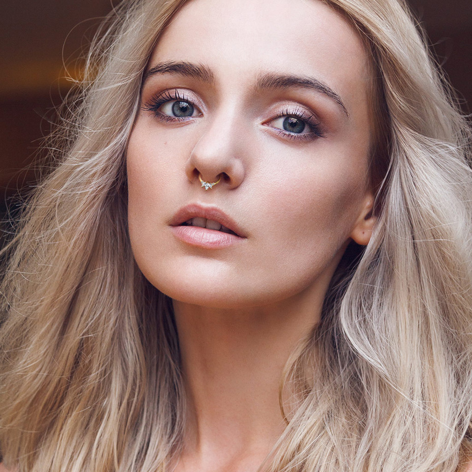 Attēlā redzamo gredzenu var nēsāt dažādos pīrsingos, piemēram, septum vai daith pīrsingā. Pīrsinga gredzens ir izgatavots no 14 karātu zelta un ir pieejams divos variantos: no tradicionālā dzeltenā zelta un piezemētā baltā zelta.
