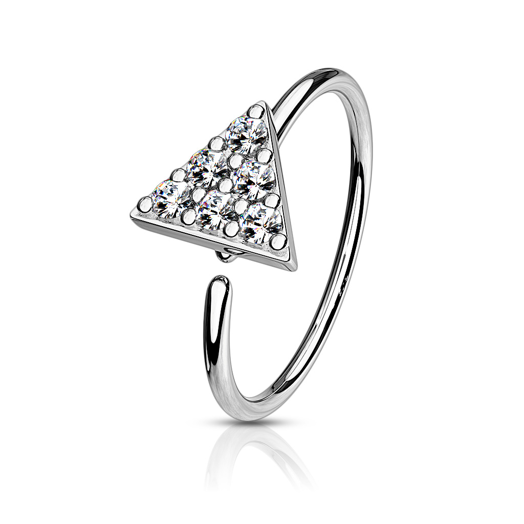 Viengabala pīrsinga gredzens ar kristāliem noklātu trīsstūri