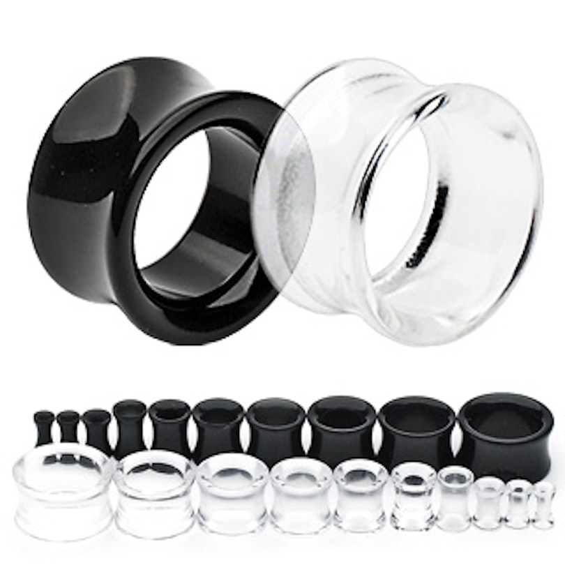 Akrila tunelis ir pieejams izmēros sākot no, 3 mm līdz 25 (8g līdz 1 collai).
