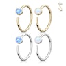 Pīrsinga gredzens ir rotāts ar sintētisku opālu, 1/8 collas (2.5 mm) diametrā. Turklāt izvēloties zelta veidu, jūs varat izvēlēties arī sintētiskā opāla krāsu, starp baltu un zilu. Baltajam opālam ir pamanāmas sarkanīgas, dzeltenas un zaļas nokrāsas, bet baltā ir pamatkrāsa. Zilās krāsas akmenī ir gaiši zili, tirkīza un tumši zilas nianses.