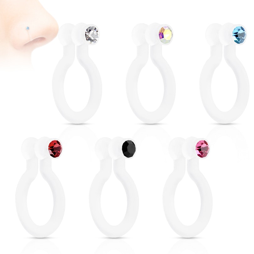 Iegādājieties šo satriecošo viltus deguns pīrsingu ar nelielu kristāliņu, ja jums nav caurdurts deguns pīrsings. Šis nelielais pīrsings izskatās pēc PTFE gredzentiņa, caurspīdīga un mīksta materiāla. Tam ir kristāls, kurš rotās jūsu nāss priekšpusi. Tomēr, tas ir atvērts riņķis, kuru pievieno degunam, viegli saspiežot abas tā puses. Ārējā šī deguns pīrsinga daļā, atrodas neliels akmentiņš, bet plastmasas materiāla malas ir ar plakanu virsmu, kas padarat pīrsinga ievietošanu vieglāku. Rezultātā, kristāliņš, izskatīsies kā īsts deguna pīrsings, jo plastmasa ir caurspīdīga. Jūs varat izvēlēties starp sešām krāsām. Ja nevarat nolemt kuru, cena ir tik zema, ka varat iegādāties sev divus vai trīs viltus pīrsingus. :)