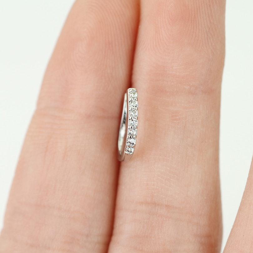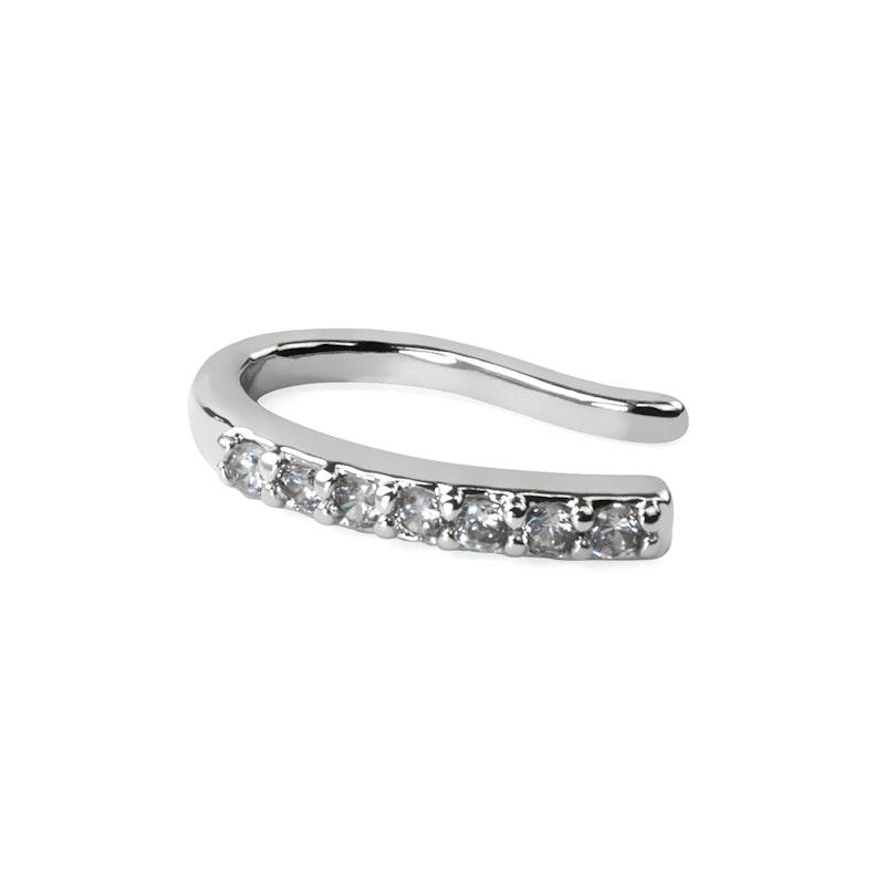 Attēlā redzamajai rotaslietai ir U forma - ievieto ar kristāliem noklāto joslu nāss priekšpusē. Maigi saspied rotaslietu, lai tā noturētos vietā.