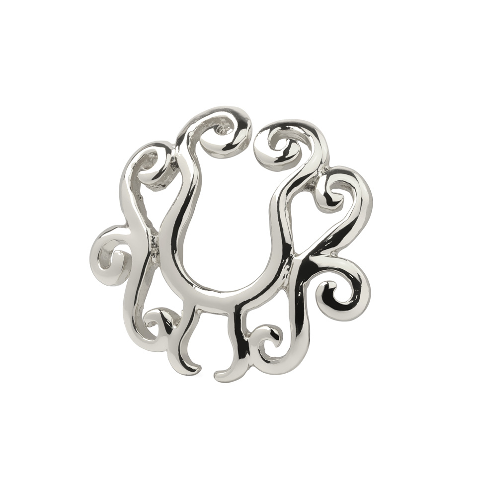 Vai jums patīk kā izskatās krūtsgala pīrsingu, bet jums ir bail caurdurt savus krūtsgalus ar adatu? Tad jūsu lūgšanas ir tikušas sadzirdētas: tagad jūs varat nēsāt šo brīnišķīgo krūtsgala vairogu, bez vajadzības izdurt pīrsingu! Tam ir gudrs dizains, un kad tas būs apkārt jūsu krūtsgalam, pamanīt, ka tas ir viltus pīrsings, nebūs iespējams. Šis krūtsgala vairogs ar cilšu rakstu ir pieejams divās, dažādās krāsās: sudraba un zelta. Uzticieties savai gaumei, un izvēlieties to, kurš patīk jums vislabāk. Lai piemērotu to savam krūtsgalam, jums ir tas tikai maigi jāsaspiež. Daļa, kura ietver jūsu krūtsgalu ir aptuveni 3/8 collas (9 mm), kuru var pēc nepieciešamības pielāgot. Tribal raksti ir radušies dažādās kuktūrās, katra dizains ir unikāls un ietver sevī īpašu nozīmi. Raksti ir populāri tetovējumu pasaulē, bet tagad jūs to varat iegūt krūtsgala vairogā.
