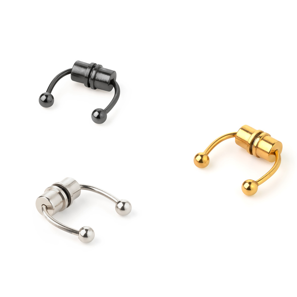 Tomēr atvērta tipa dizains ir problemātisks, t. i., nav viegli radīt īsta pīrsinga ilūziju ar tādām rotām kā pakaviņiem. Risinājums šādam dizainam ir magnēts. Jāņem gan vērā, ka šāda veida fiksators ir vislabāk piemērots tām ķermeņa daļām, kurās magnēts būs paslēpts, piemēram, septum; šajā pīrsingā rota vienmēr ir daļēji paslēpta degunā. Pretējā gadījumā, novietojot šo pakaviņu uz tādas ķermeņa daļas, kā, piemēram, auss ļipiņas, magnētiskais elements būs pamanāms - tas noteikti nevienu neapmānīs.
