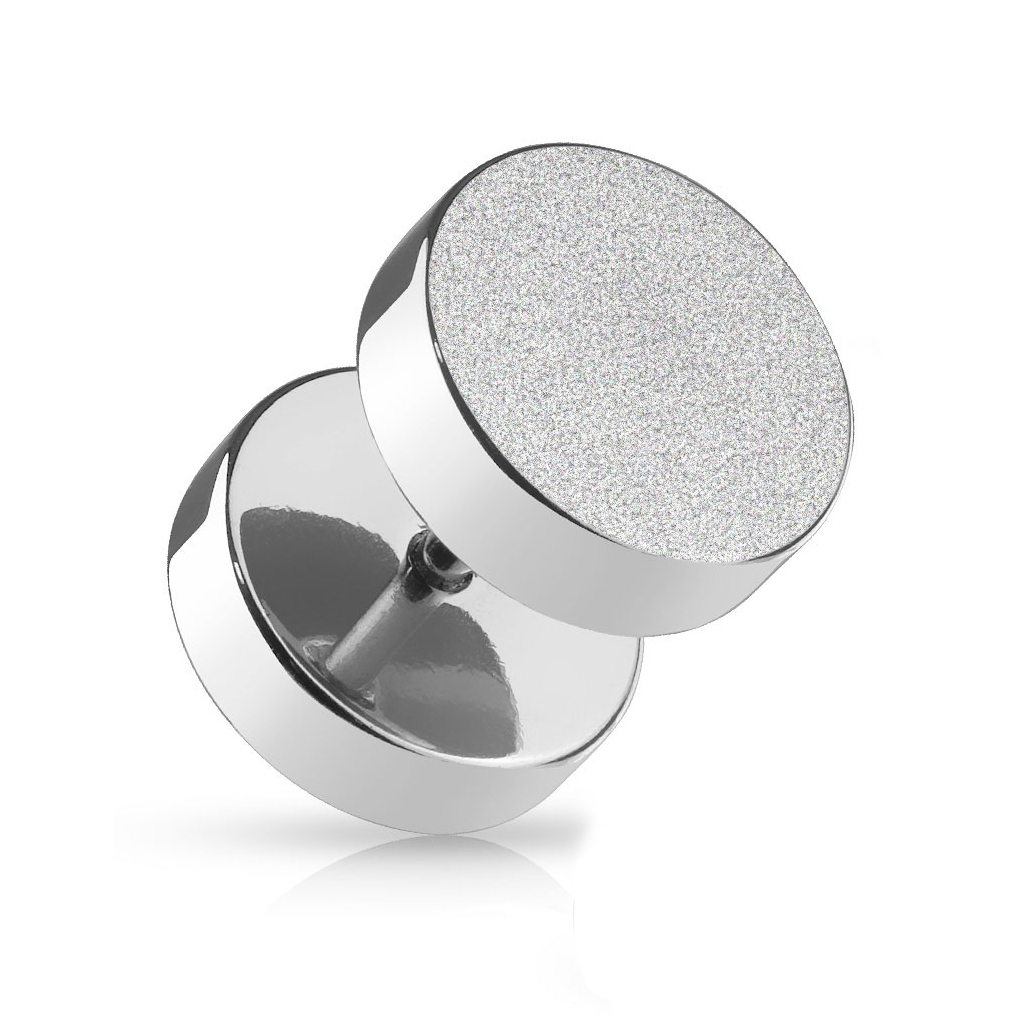 Šis viltus plugs ir izgatavots no ķirurģiskā tērauda, un to veido divi apaļi diski gan priekšpusē, gan aizmugurē. Tie ir pieejami diametrā no 3 mm līdz 14 mm (1/8 - 9/16) un ir savienoti ar 1,2 mm (16g) stienīti, kas ir 6 mm (1/4 collas) garš. Priekšējais dekoratīvais disks ir apstrādāts ar smilšu strūklu, kas piešķir tam briljantam raksturīgo mirdzumu - tas burvīgi atstaros gaismu un vizuļos pie katras Tavas kustības.