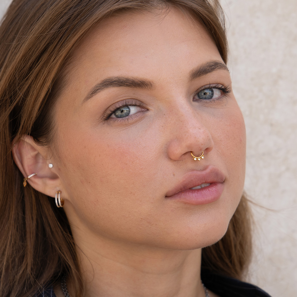 Septum pīrsingi šobrīd ir vieni no karstākajiem trendiem, un tagad, pateicoties šai viltus pīrsinga rotai, arī Tu varēsi sekot tam līdzi pat tādā gadījumā, ja vēl neesi gatavs caurdurt pīrsingu! Šī pīrsingu gredzena atjautīgais dizains, kurā riņķis tiek piesprausts klāt pie septum, vizuāli radīs iespaidu, ka Tev ir īsts pīrsings.