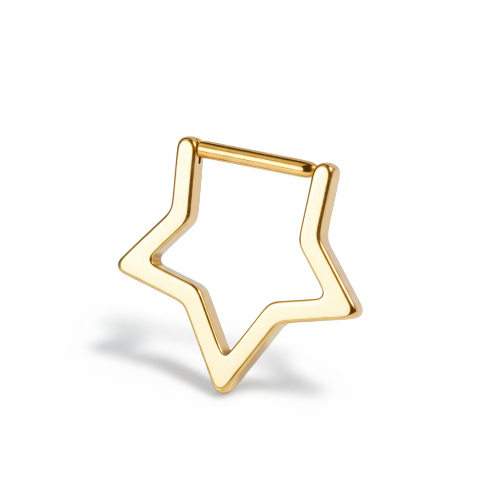 Šis zvaigznes formas klikeris no titāna ir perfekta rota dažādiem pīrsingiem. Piemēram, tā izskatīsies lieliski septum, helix, auss ļipiņas vai rook pīrsingā. Rotaslieta ir izgatavota no izturīga titāna, tā ir ūdensizturīga, droša jūtīgai ādai un radīta, lai kalpotu ilgi. Aizdares mehānisms eņģīte ļauj rotu viegli ievietot Tavā pīrsingā. Rotai ir tukšs vidus, kas ļauj tai izskatīties masīvai, taču tai pat laikā būt super vieglai un ērtai.